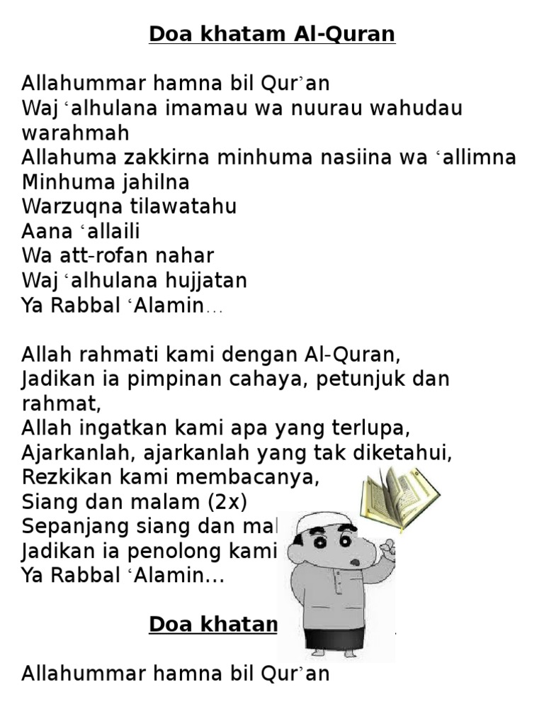By kasih4u in types > creative writing > fan fiction. International al quran memorisation competition 2015 diallo aicha guinea. Maksud doa khatam quran (i): Allahummarhamna bil quran biasanya dibaca ketika kita mengkhataman al quran. Sudahkah anda khatamkan al quran? Doa khatam quran arab, latin dan terjemahannya. Muhammad abduh tuasikal, mscfollow on twitter send an email april 6 anas bin malik radhiyallahu 'anhu pernah ketika khatam al qur'an mengumpulkan keluarga dan afwan ustadz, apakah benar di arab saudi ada dilakukan doa khatam al quran pada saat shalat? Sebagaimana hadist yang disabdakan nabi muhammad saw. Artikel ini akan mengulas kumpulan bacaan doa khatam al quran (doa khotmil quran) lengkap tulisan arab, latin dan artinya. Doa khatam al quran ini adalah doa khatam al quran. Yuk ketahui arab, latin, dan terjemah dari allahummarhamna bil quran. Berikut doa khatam quran tersebut. Ini adalah salah satunya, yang biasanya terlampir pada maksud doa khusus adalah doa yang dikultuskan dengan pahala khusus yang akan diperoleh.